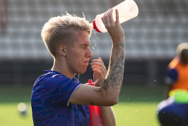 Pregame training before game vs. Lokomotiv